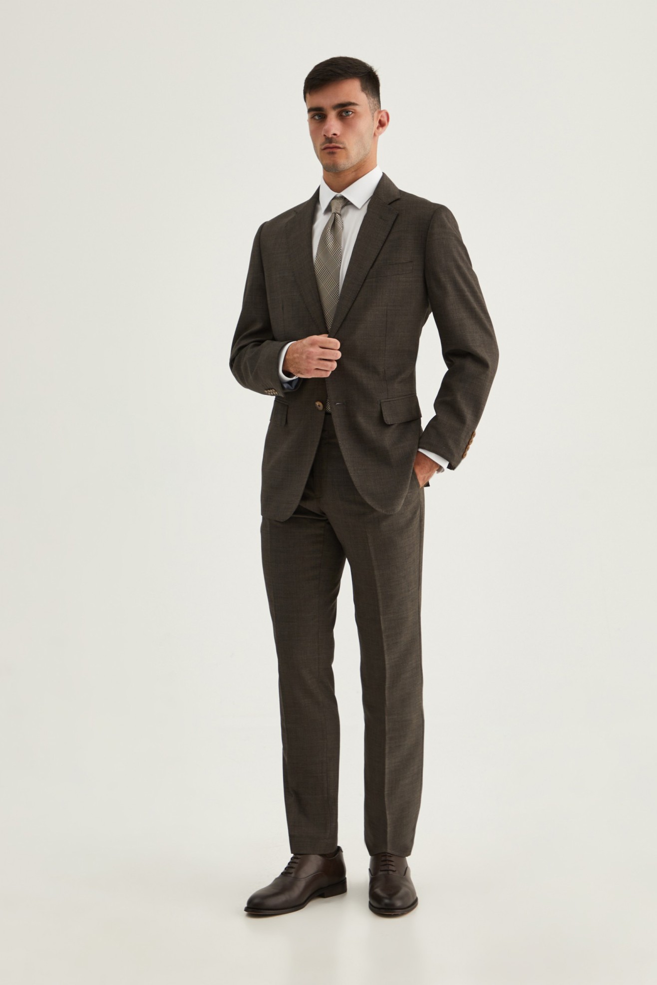 Este clásico traje slim fit de lana no puede faltar en su armario formal. La americana se abrocha con dos botones, tiene dos bolsillos delanteros con solapa y un bolsillo en el pecho. En la parte trasera, tiene una abertura en el centro de la espalda. El pantalón clásico está arrugado y tiene bolsillos delanteros y traseros.Nota: Talla de traje 7 (la talla del pantalón es 7 números inferior a la talla de la americana).Composição